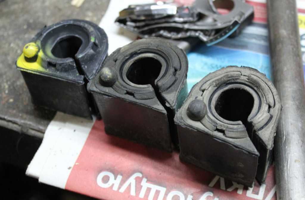 Эти разрезы на сайлентблоках должны быть, не пугайтесь))) Слева — новый, дальше 2 — старые сайлентблоки