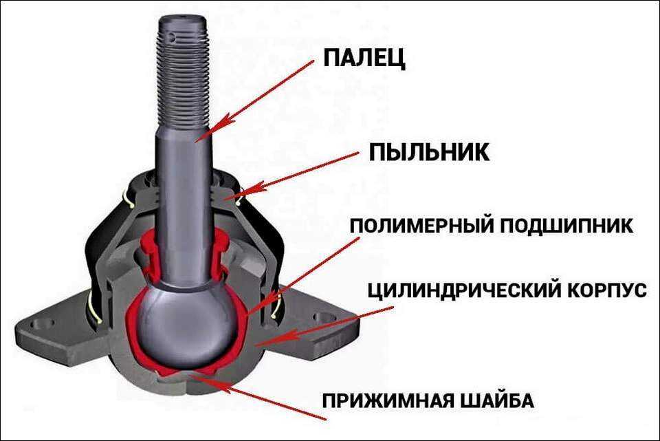 Это шарнир, который работает как органический сустав. Другими словами, внутри механизма расположен шар, позволяющий основе двигаться в разных плоскостях. Находится шаровая в том месте, где рычаг зафиксирован к ступице, и выполняет соединительную функцию. Обычно на иномарках количество опор ограничивается по одной на колесо, но на Mercedes‐Benz и некоторых других моделях их ставится по две, как на Жигулях.