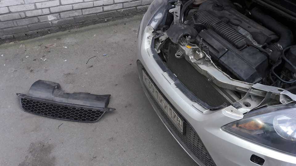Радиатор снимается в сборе с вентилятором. С радиатором системы охлаждения соединен защелками конденсатор системы кондиционирования воздуха.
