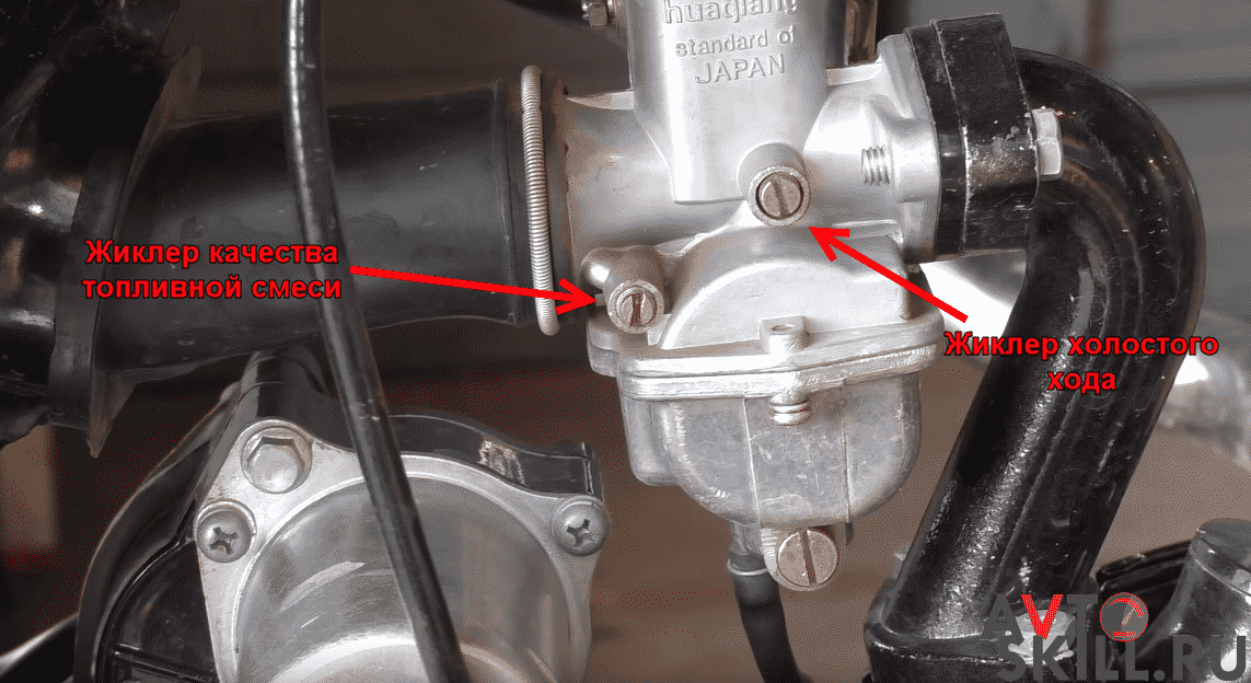 Когда неправильно отрегулирован левый жиклер качества топлива, смесь получается богатой или бедной. В результате увеличивается износ и расход горючего. Нижний жиклер необходим для слива бензина и удаления конденсата, он раскручивается против часовой стрелки. Но для регулировки его трогать не нужно.