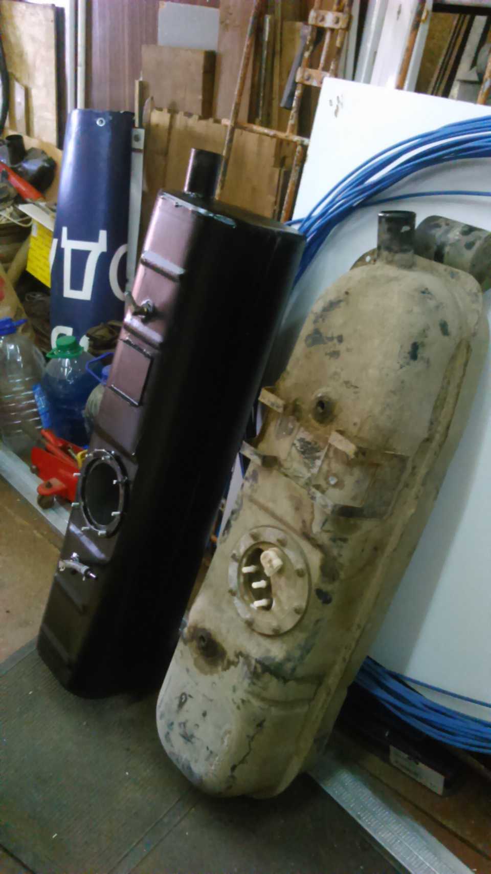 Всем доброго времени суток.После покатушки правый топливный бак у меня был изрядно помят, но не тёк. Так продолжалось примерно 4 месяца. Но вдруг, из-под сливного болта, начало медленно, но верно капать. Можно было бы попробовать подтянуть этот болт, но я боялся усугубить ситуацию. Приобрёл бак от «Бакор» на 40 литров.