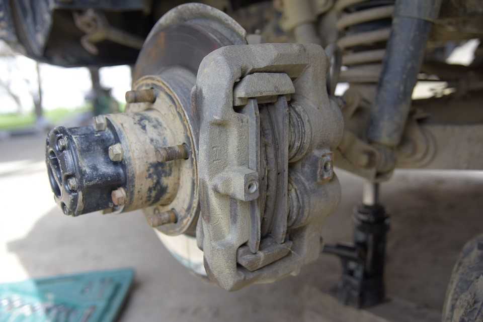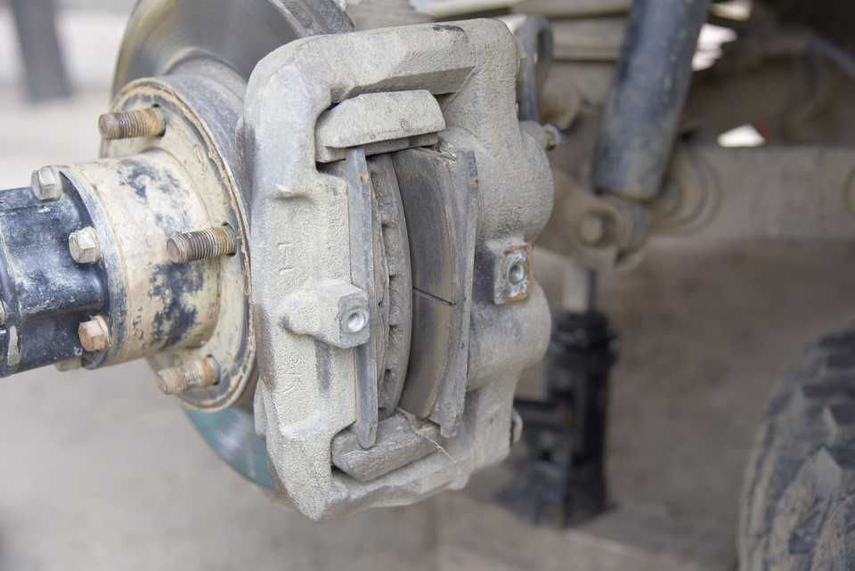 Поскольку резьбовые соединения расположены под днищем машины, то для облегчения процедуры на поверхности наносится жидкость типа WD40. Вынуть пальцы, что позволит снять изношенные колодки совместно с пластиной опорных элементов.