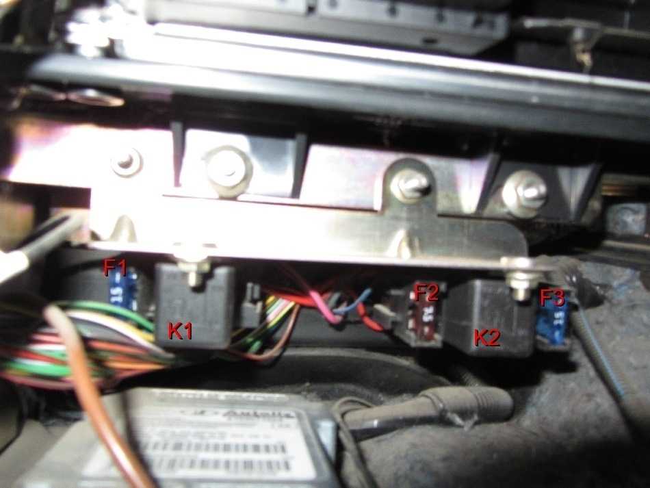 В дополнительном монтажном блоке расположены три предохранителя и два реле.