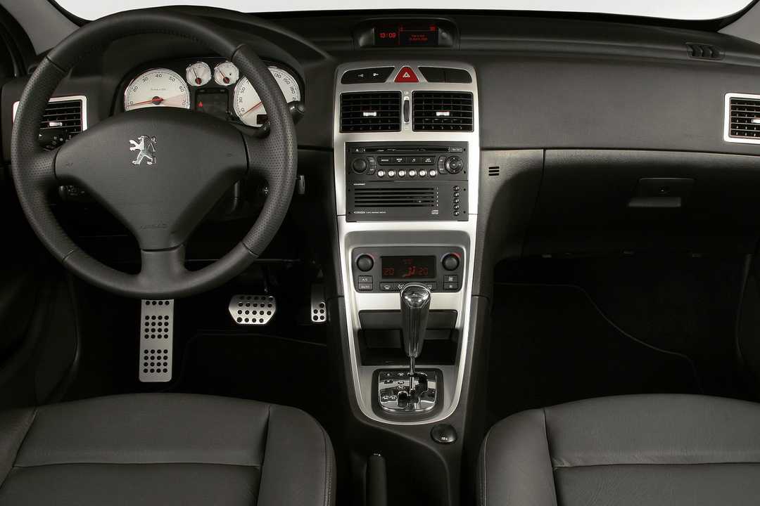 Уже в базовой версии Пежо 307 можно найти 2 подушки безопасности, электростеклоподъемники, усилитель руля и бортовой компьютер. Более дорогие комплектации порадуют боковыми подушками и шторками безопасности, противотуманными фарами и подогревом боковых зеркал. После рестайлинга оборудование стало еще богаче.