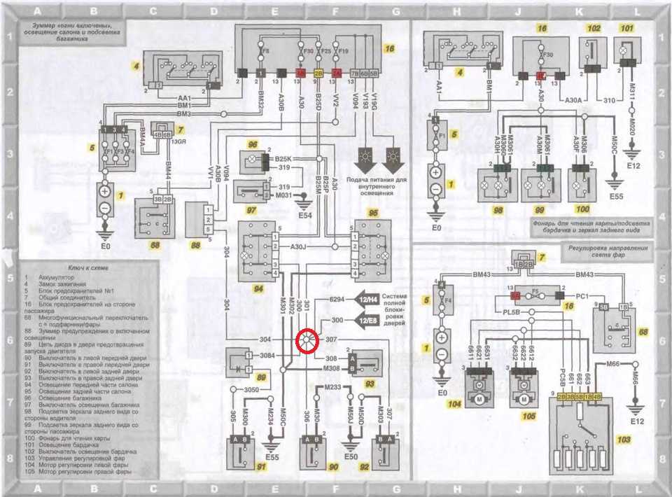 Внутренне освещение и регулировка фар — эл.схема