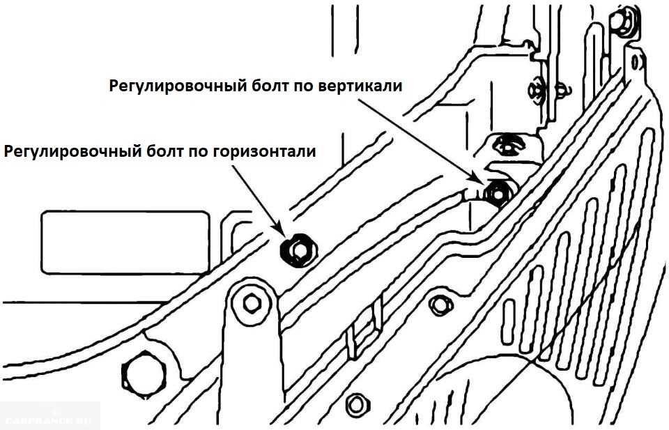 Почти все спецы советуют регулировать свет каждой фары по отдельности. К примеру, можно во время регулировки одной прикрыть другую фару плотным темным материалом, который не пропускает свет. Под капотом находится регулировочный винт, при помощи которого можно поменять положение на стенке светового пятна от фары в 2-х плоскостях.