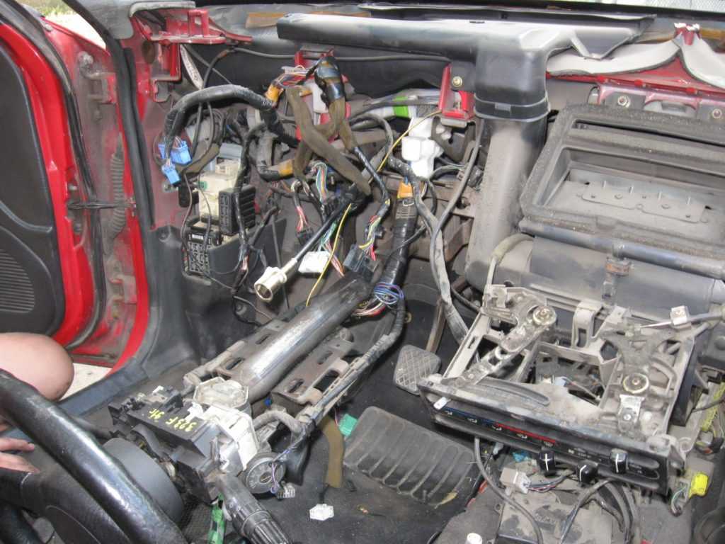 Первый и самый сложный этап – демонтаж всей передней панели. Нужно снять все крепления, весь пластик, магнитолу, бардачок и вообще все, что находится в этой части автомобиля.