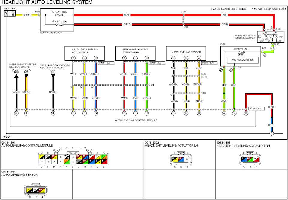 MAZDA3 FL (BK) и MAZDA5 (CR) система автоматической регулировки наклона оптической оси фар