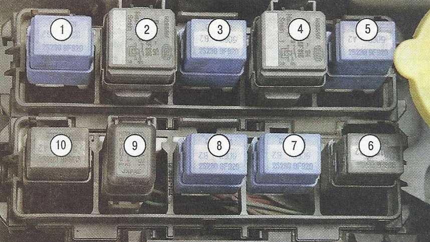 Реле на лицевой стороне панели блока предохранителей