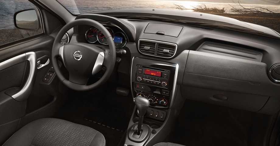 Обновленная приборная панель Террано в трех отдельных колодцах, трехспицевый руль достаточно удобен и обладает приливами в местах хвата, кнопками управления аудиосистемой. Визуально интерьер разбавляют серебристые вставки на рычаге КПП, дверных картах и вокруг дефлекторов обдува.