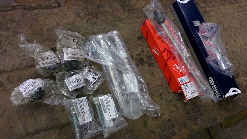 — эксцентриковый болт схождения 20540AA111 2 шт. 560р— длинный болт, прикручивающий поперечную тягу к кулаку 20540AA001 2шт: 1620р— внешний сайлент поперечной тяги 20251AA040 2шт: 620р— внутренний сайлент поперечной тяги 20251AA021 2шт: 580р