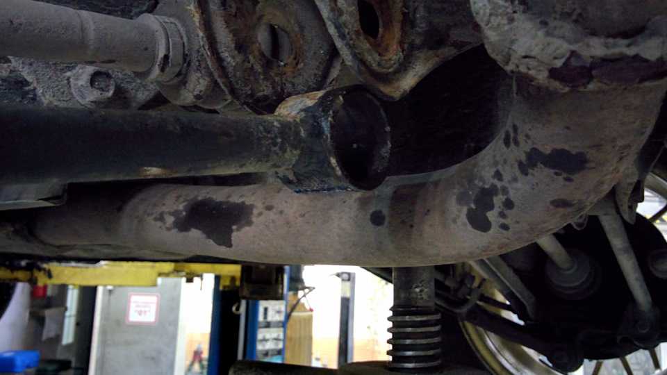 С помощью кувалды, лома и всяких матерей выбили старый сайлент. Сама резинка живая, но обрубок болта во втулке остался навсегда)