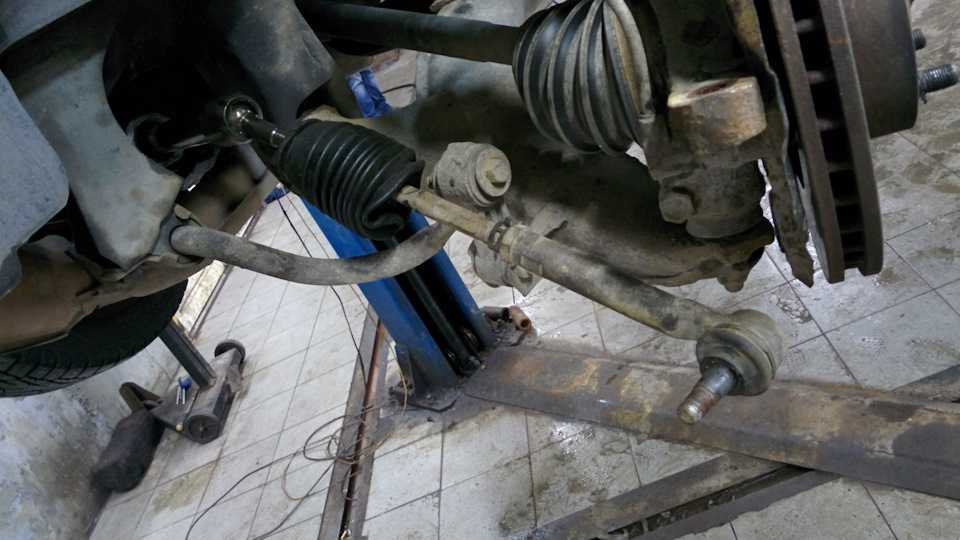 Затем снимаем старую рулевую тягу с наконечником: