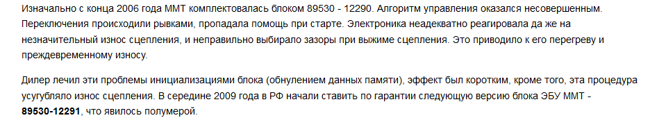 Вопрос надежности резко стал в 2007–2008 гг., заключалось это в прошивке контроллера и строении сцепления. Производители Тойоты в 2010 г. провели работу по замене актуатора, сцепления и модернизированного контроллера единовременно. Замены осуществлялись по заявлению, сразу и бесплатно. Под эту кампанию попадали даже авто с истекшей гарантией. После замены ни одной поломки не было, даже при дополнительном пробеге 10000 км.