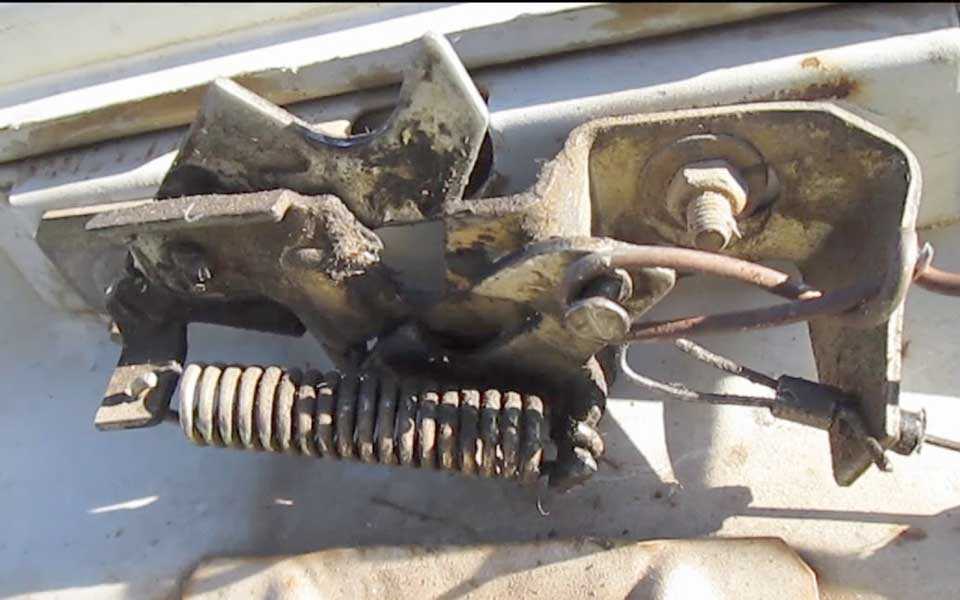 Растягивание тросика в процессе эксплуатации и его неспособность подтянуть защелку.