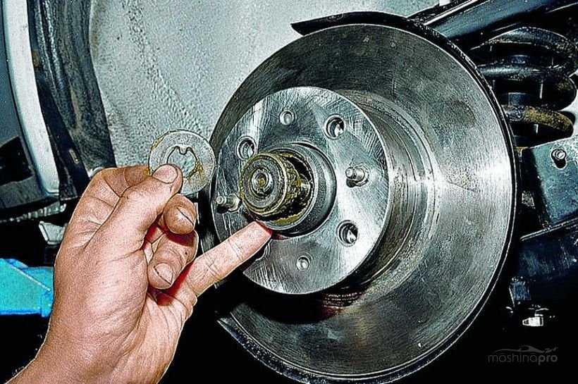 подвешенном состоянии, снимать его не стоит. - Удаляется фиксирующая гайка ступицы, убирается